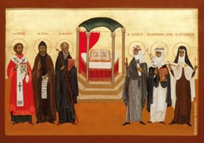 Herr Jesus Christus, Du bist das Licht der Welt, um das sich Menschen seit Generationen hinweg versammeln. Die Patroninnen und Patrone Europas waren leuchtende Boten Deiner Liebe in ihrer Zeit. Wie wir heute, so waren auch sie von Unfrieden und Kriegen in ihren Lebenstagen erschüttert. Sie fanden Kraft im Glauben an Dich und waren so Zeichen der Zuversicht und Richtschnur des Friedens und der Versöhnung. So bitten wir Dich auf die Fürsprache dieser Heiligen: Schenke uns Deinen Heiligen Geist, der uns Trost und Halt in dieser friedlosen Zeit gibt. Schenke den Geflüchteten Aufnahme, den Schutzsuchenden Sicherheit, den Herrschern Umkehr und Wille zum Frieden. Zeige Dich in unserem Leben und gib uns Kraft und Mut zu kleinen Schritten der Solidarität, des Friedens und der Versöhnung. Amen. (Bistum Fulda, April 2022)
